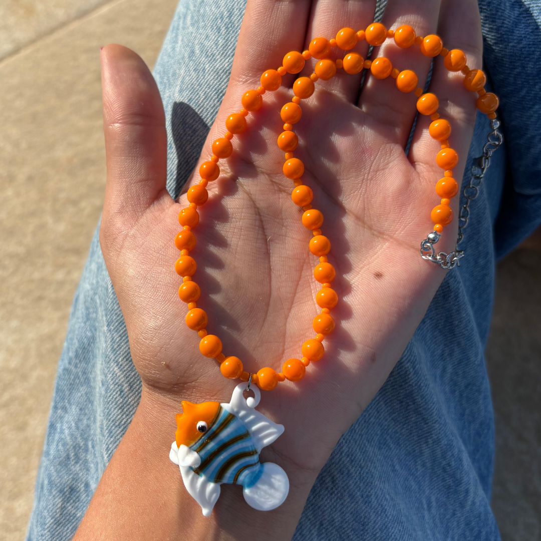 Nuestro collar Aruba es una joya que irradia verano desde cada uno de sus detalles. Su vibrante color naranja recuerda los atardeceres junto al mar, mientras que el charm en forma de pez aporta un toque fresco que representa la temporada.